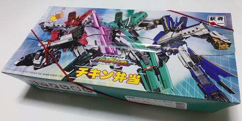 いつもはオレンジ色のチキン弁当の箱が、こんなことになっていました。 新幹線変形ロボシンカリオンとのコラボらしいです。 あー、NREだけに、やっぱりJR東日本の新幹線だけなんだ…と思って箱の横を見たら、 JR北海道もJR東海もJR西日本もJR九州もいるじゃな…